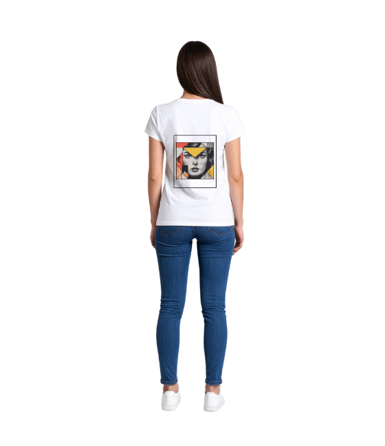 Женская футболка с принтом сзади — стильный выбор для повседневного образа или подарка.